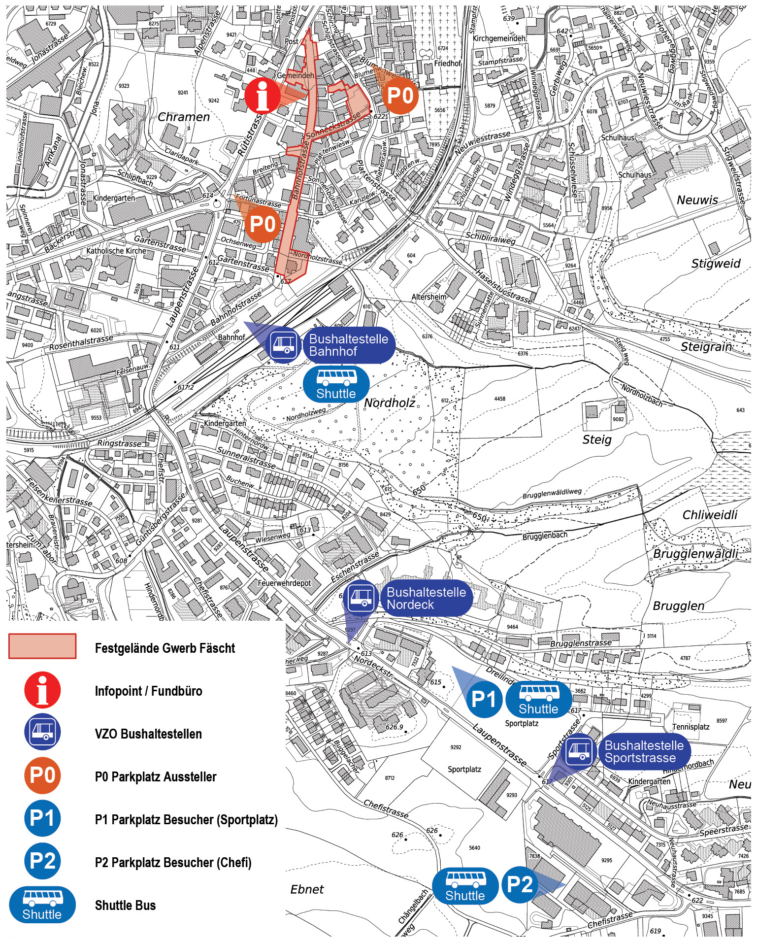 Parkplätze, Bus und Shuttle